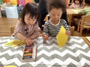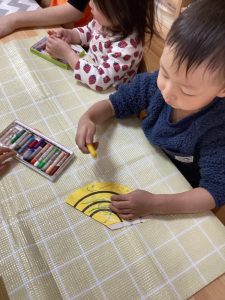 黄色の画用紙に黄色のクレヨン、どんな風に色がつくのかな??