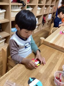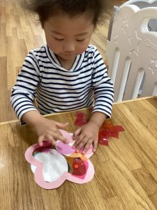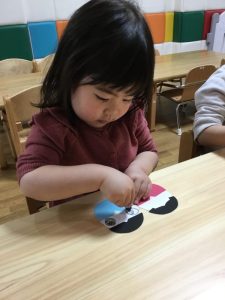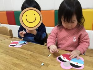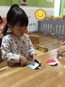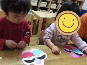 いちご組さんもシールでお顔を作ります!
