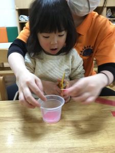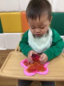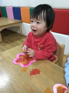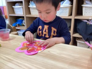ハサミが使えるお友だちがカラーセロハンを切ってくれました