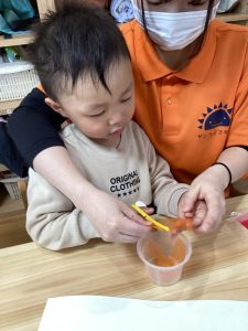 りんご組さんはクレヨンでお顔を描きます🖍