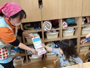今週は「おんなのこ トイレ」という絵本をみんなで読みました![]()