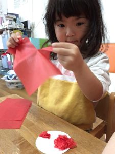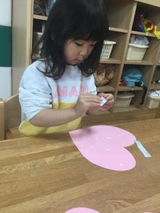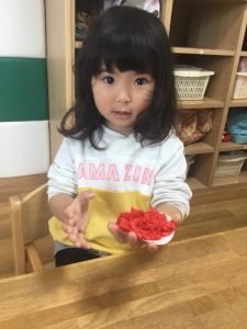 りんご組のお姉さんはちっちゃなシールも上手に貼ります![]()