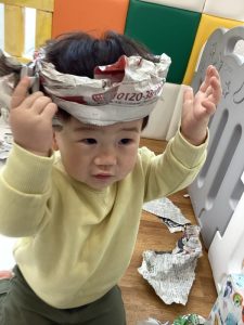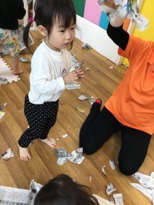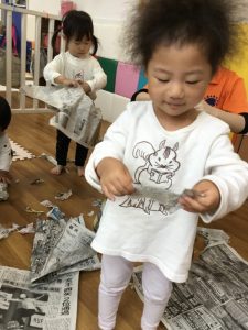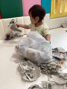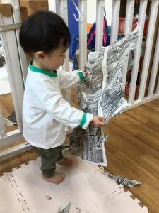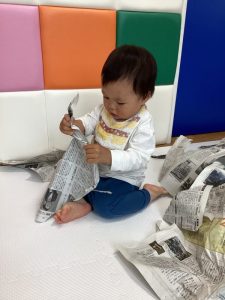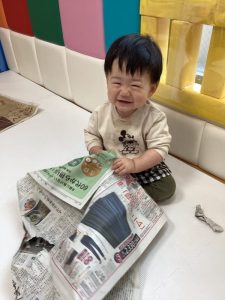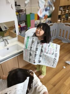 大きな新聞紙、どうやって遊ぼうかな??
