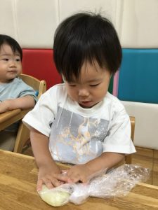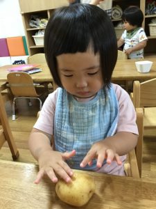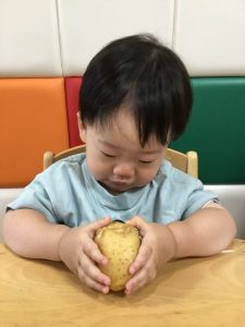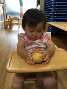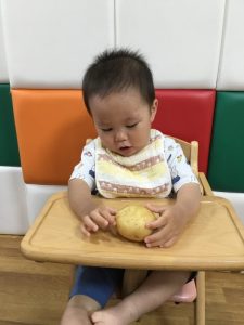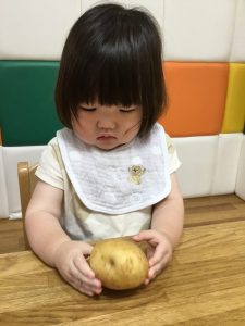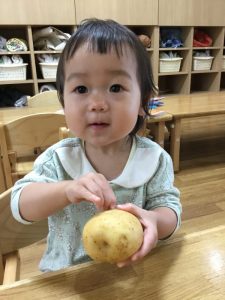 お料理前のじゃがいもを見るのは初めてのお友だちもいたようです![]()