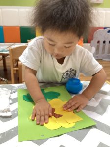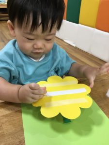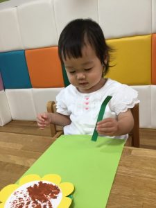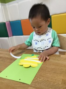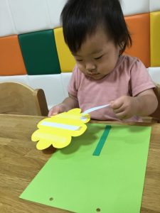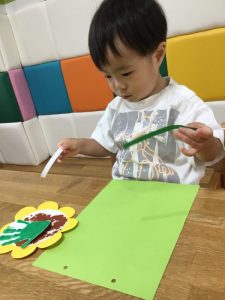 どこに貼ろうかな?茎を貼れたら次はお花