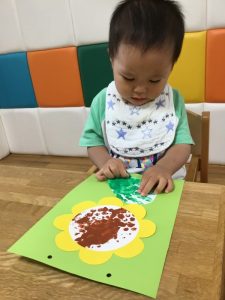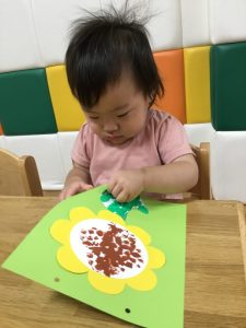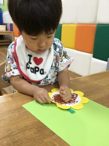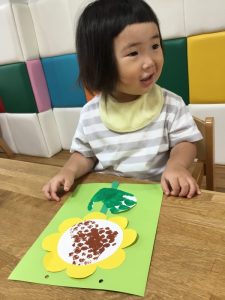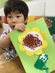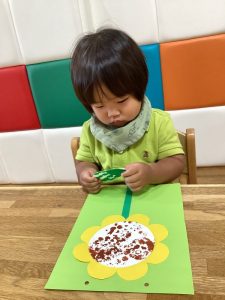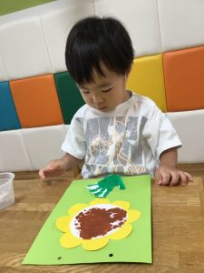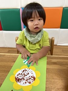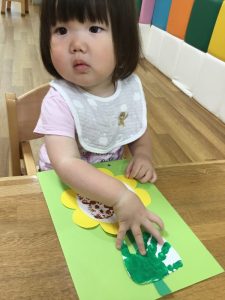 ひまわりの種の部分をぷちぷち(緩衝材)でスタンプをしました!