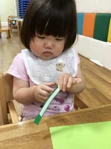 りんごぐみさんはのりを使って貼りましたよ!