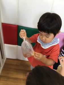 ビニール袋に入れて感触を楽しみましたよ!