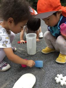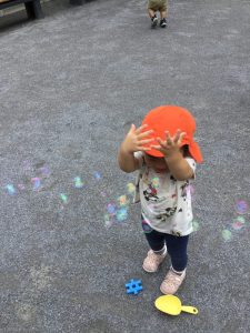 ダンゴムシ探しやお砂場遊び、お店屋さんごっこ、シャボン玉…