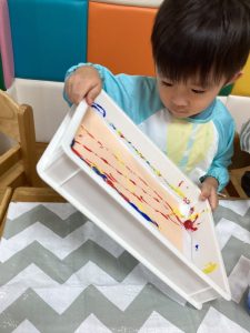 ビー玉を転がして出てくる模様を楽しみます![]()
