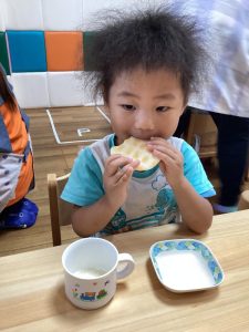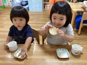 朝のおやつはお月様のようなまんまるおせんべい!