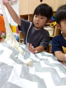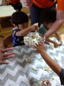 先生がお団子の作り方を教えてくれました