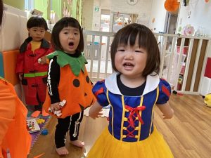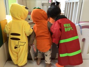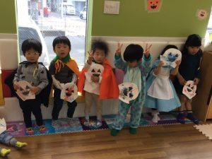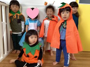 今年は仮装自由!ということで、お家から着てくる子や保育園にあるものを選ぶ子など…