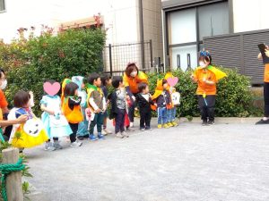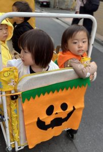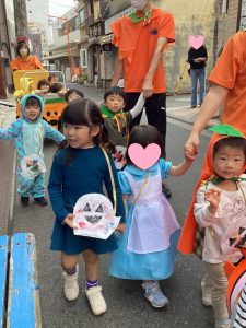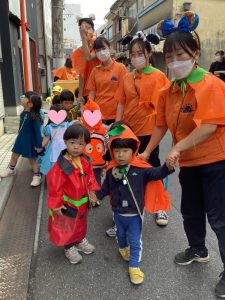 帰りはご家族や先生と手を繋いでぐるりと仮装パレード