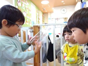 初めて聖母の騎士保育園に入ったお友達はドキドキした様子