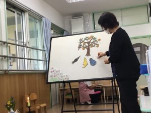 柿の出てくる秋らしいパネルシアターをみんなで楽しみます