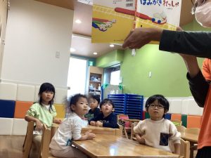 今週は「はみがきれっしゃ」という絵本を楽しみました