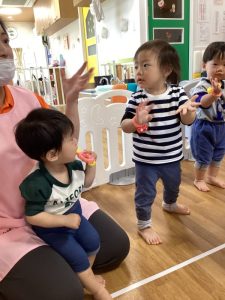 目を輝かせて手を伸ばし、ハイタッチできるとニコニコの子どもたちでした![]()