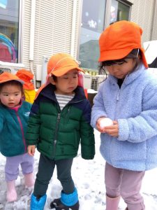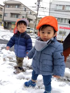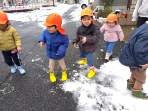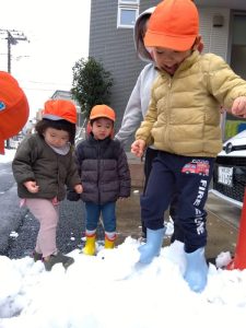 火曜日の朝は降り積もった雪にワクワクした表情で登園してきた子どもたち!