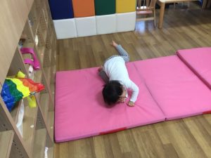 どこまで転がれるかな?壁の位置もしっかり確認していましたよ。