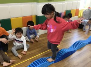 体操カリキュラムでは楽しく身体の使い方を身に着けていきます。