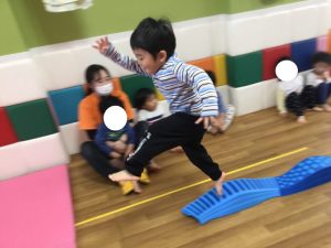 この運動は縄跳びやスキップ、ボール遊びなどの基礎になる協調運動能力の向上やバランス力の向上が期待できますよ![]()