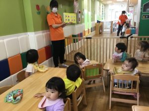 お昼ごはんの前には「のりまき のりちゃん」という絵本をみんなで楽しみました!