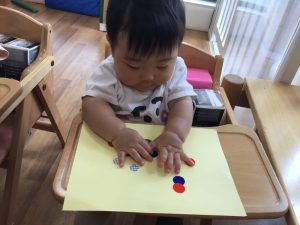 上手に指先を使ってペタッと貼って、取れないようにギューとしっかり貼っていました![]()