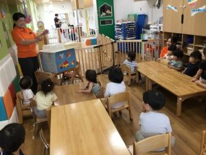 お誕生日の出し物ではペープサートの動物さんたちがお誕生日をお祝いしにきてくれました。