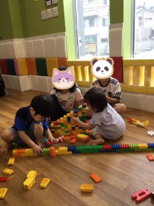 ブロックで遊んだり、絵本を読んでもらったりとたくさん遊んでもらって嬉しそうな