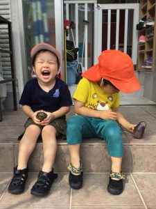 保育園で育てているナスも出てくると、「保育園のなさも大きくなったね」と育てている