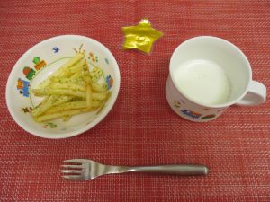 【1.2歳児食】エネルギー447kcal たんぱく質16.9g 脂質15.4g