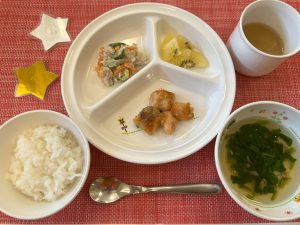 サンライズキッズ保育園 ◎給食の様子 今日は、鶏の南蛮漬けでした。お酢は一度に煮立たせると酸味がまろ...
