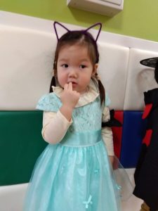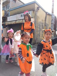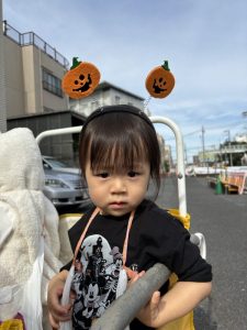 「おはよう」と元気に保育園にくると、可愛い仮装をした子どもたちが登園してきました。
