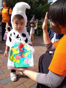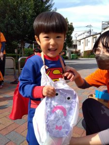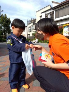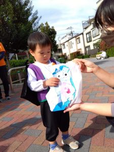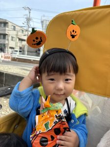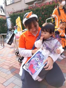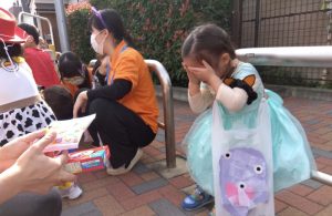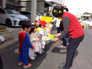 公園に着くと園長先生からお菓子のプレゼントがありました。もらう時には…「Trick or Treat ‼︎」