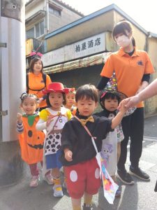 「〇〇ちゃん可愛いね」「見て!かっこいいでしょ?」とお気に入りの仮装をお友だちや先生に見せてくれました。みんなとっても似合っていて先生たちはいつも以上に笑顔がいっぱいでした