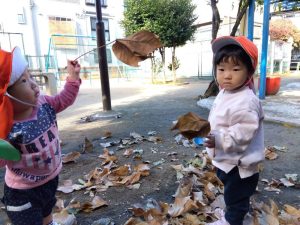 絵本を読んだ後は公園で落ち葉遊びを楽しみました![]()