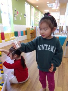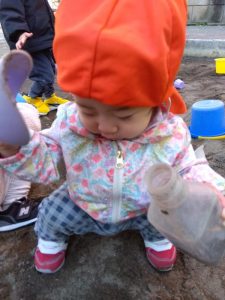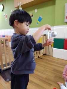 保育者と一緒にやってみたり、手でボールをつかんでいれたりして「できた!」と嬉しそうに教えてくれるのでした![]()