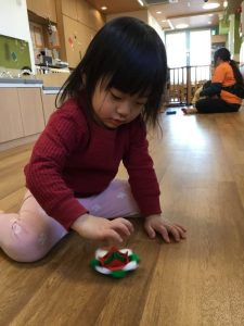 少し長めの冬休み、2025年最初の保育は「電車に乗ったんだよ!」「じいじばあばと遊んだ!」などなど、お休み中の楽しかった思い出を嬉しそうにお話ししてくれる子どもたちと元気いっぱいに過ごしました。