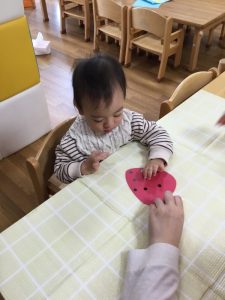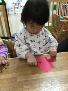 苦戦しながらも一生懸命指先を使ってシールを剥がしていましたよ![]()