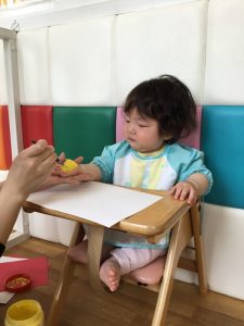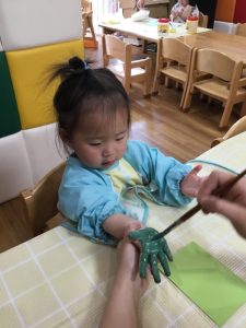 初めての手型取りに違和感満載のもも組さん、、![]()