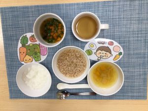 (写真は後期食です。月齢によって形、固さ、盛り付け量を変えて提供しています。)