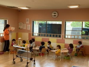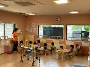 絵本が好きなお友だちがたくさんいます。少しずつ短いお話から長いお話も聞けるようになる日が楽しみです♪