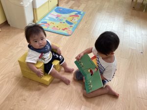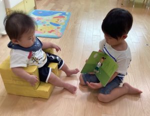 りんご組のお兄ちゃんが、もも組のお友だちに