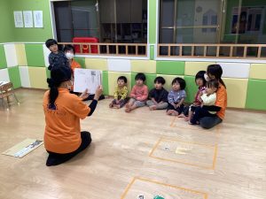 避難訓練後に地震の紙芝居を見ました。