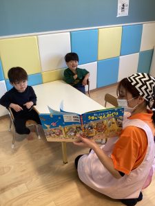 今日はおやつの前の読み聞かせの様子をご紹介します☺️