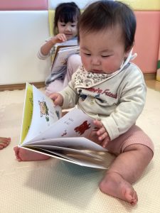 読み聞かせの後は絵本を手に取りペラペラめくって