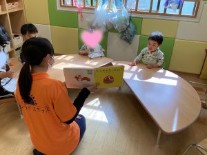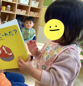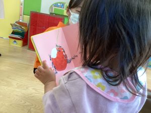 おやつの前の読み聞かせの様子をお伝えいたします。