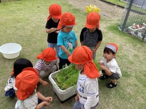 雨の合間を縫って園庭に出て遊んでいます🌥