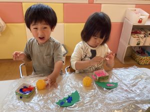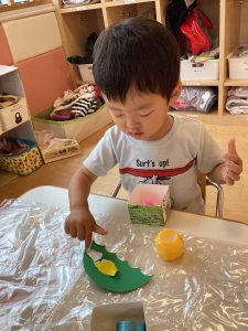 シール貼りやフィンガーペイントをしました😊
